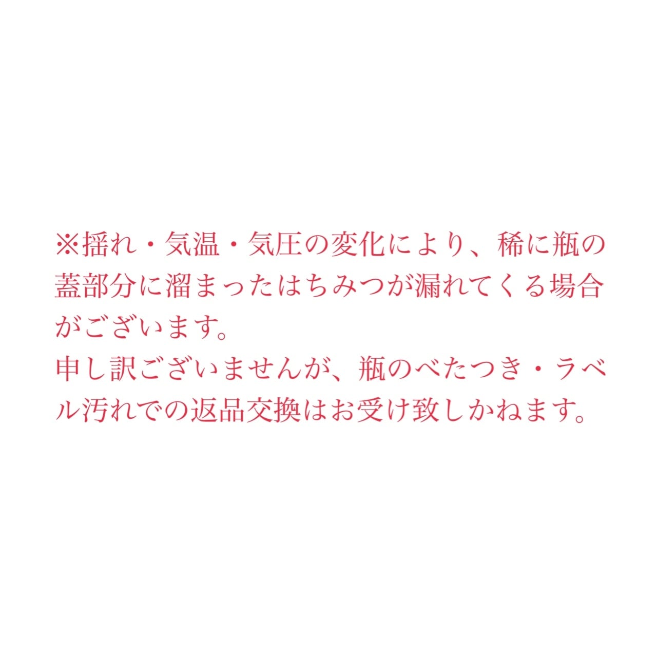 また、はちみつは天然の産物のため、気象条件や採蜜状況などにより同じ植物から採取した場合でも色が違う場合があります。